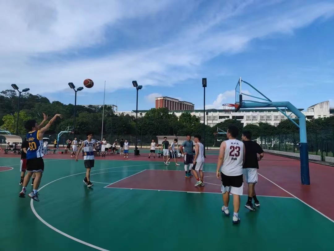 为了欢送2022届毕业生,我院于5月28日下午,在荔园篮球场举办了一场主题为“挥洒汗水,激昂青春”的毕业杯篮球赛,共计5支队伍参赛,本科生、研究生毕业生一起,混合组队,在篮球场上一展风采。