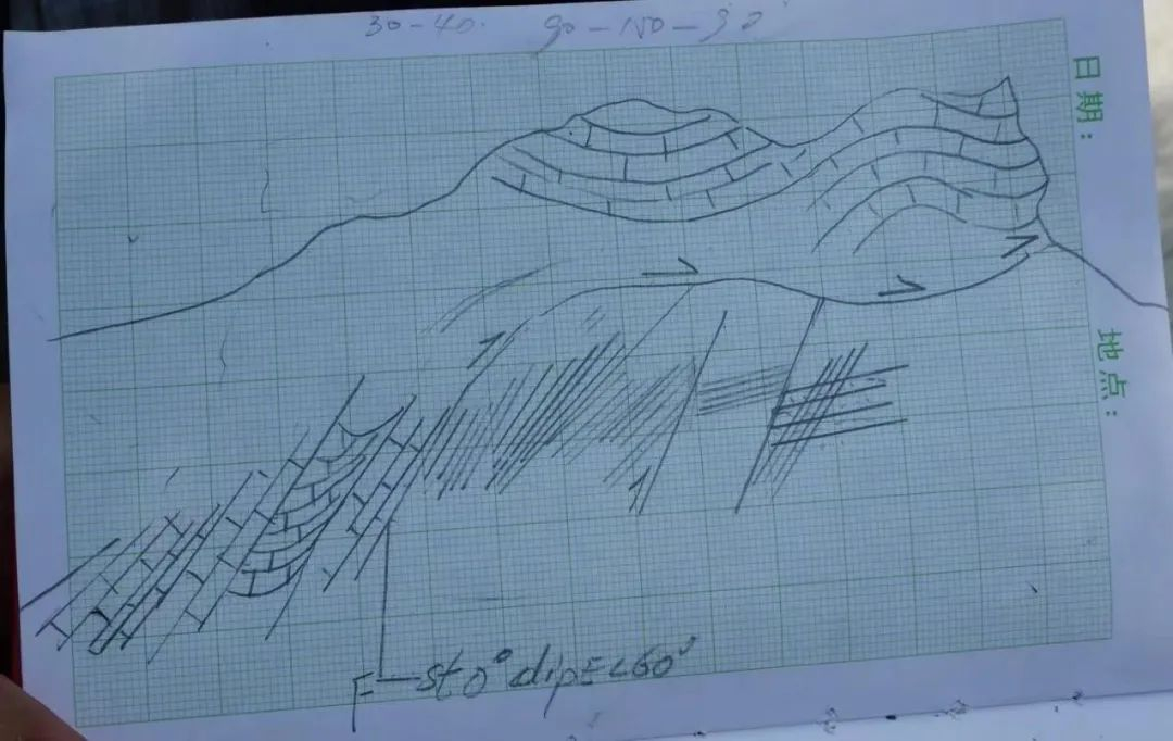 第一次野外踏勘时,信都组石英砂岩、粉砂岩与东岗岭组灰岩,褶皱、断层等构造形态被一一描述并拍照记录;第二次剖面实测时,同学们通过实地考察,整理资料、精心处理实测数据,为画实测剖面图做充分准备。