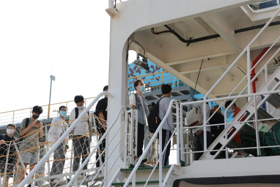 2022年11月15日,恰逢“中山大学”号在珠海高栏港码头停靠,我院67名2022级硕士研究生在中山大学海洋科学考察中心的协调安排下,登上“中山大学”号科考船开展课程学习。上午七点半,学生们在李志刚老师的带领下,从中山大学珠海校区出发,在近两小时的车程后,抵达了停靠“中山大学”号的烽火码头。下车步行百余步,巨大的“中山大学”号便映入眼帘。在配合珠海市疫情防控要求之后,师生们登上了科考船。