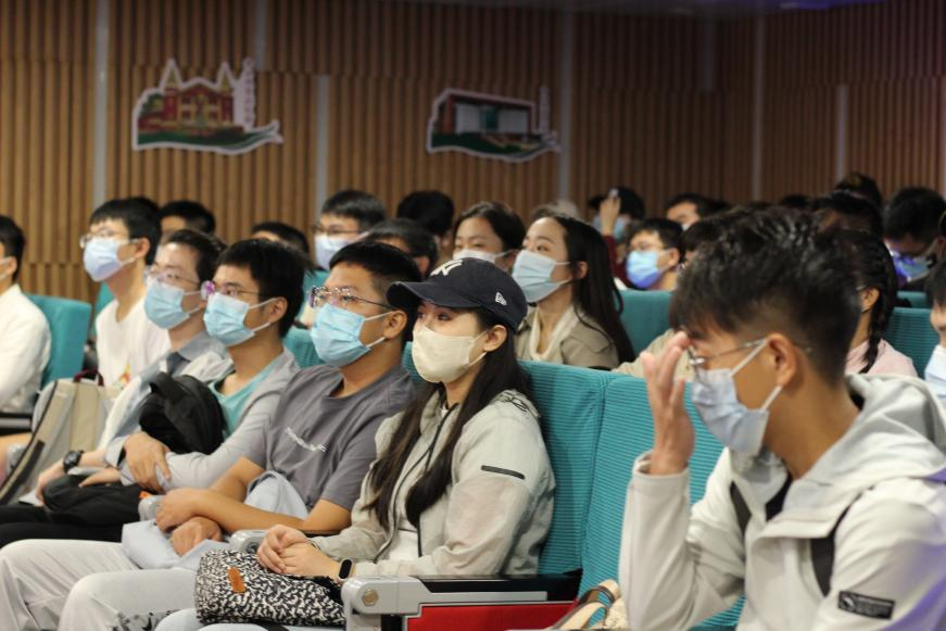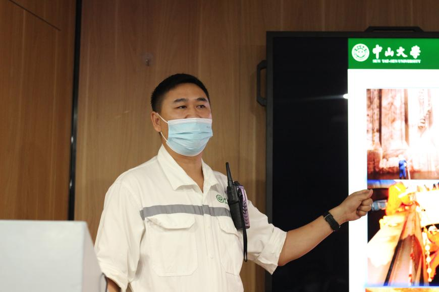 登上“中山大学”号之后,学生们来到了多媒体报告厅。金德飞船长首先为大家介绍了“中山大学”号的建造背景、功能以及所肩负的使命。他说“‘中山大学’号是我国科学家自主设计、自主研发、排水量最大、综合科考性能最强、创新设计亮点最多的海洋综合科考实习船”。继而讲述了他十余年的环球航行经历,为同学们介绍了曾抵达的66个国家,船上的组织架构、各职务日常工作职责以及航次准备等内容,使大家对远洋航行以及船员们的具体工作有了系统的了解。最后,金船长还向同学们介绍了他印象最深的几次航行及沿途所遇的风土人情、文化差异、美景美食,进一步激发了大家对于海洋的憧憬与向往。