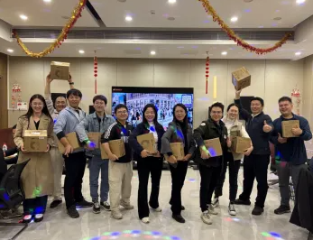 最激动人心的抽奖环节更是将气氛推向高潮,学院工会给大家准备了丰富多彩的新年伴手礼,一轮轮的抽奖活动引得现场欢呼声和尖叫声此起彼伏,空气里洋溢着浓浓的节日喜庆与温暖情谊。大家抱着奖品合影,笑脸比头顶的装饰还耀眼,这份年末的小惊喜,把一整年的幸运都打包进了新岁.