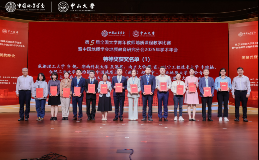 10月25-26日,第五届全国大学青年教师地质课程教学比赛暨中国地质学会地质教育研究分会2025年学术年会在中山大学珠海校区举办。来自全国68所高校的160名青年教师,专家组及仲裁组的50余位专家以及全国50多家高校及科研院所的70余名学者,参加两年一度的地质盛会,展开精彩的地质教学比赛,探讨新时代地质类课程教育改革、人才培养、未来发展。本次比赛由中国地质学会主办,中国地质学会地质教育研究分会和我院共同承办。经过多轮激烈比拼,我院成果丰硕。甘成势副教授荣获岩矿组特等奖,钱加慧副教授荣获普地组特等奖,中山大学获优秀组织奖。