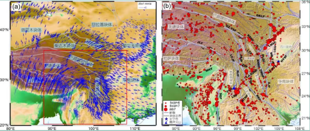 青藏高原东南缘是欧亚板块与印度板块碰撞的前缘,受到稳定的华南块体阻挡,地壳物质在此向东运移。复杂的构造环境与强烈的板块作用,使其成为中国大陆地震活动最频繁的区域之一,也是研究大陆地震孕育机制与岩石圈变形的“天然实验室”(图1)。解析该区域的地壳应力场,是理解地壳变形机制与构造演化规律的关键钥匙,更能从根本上揭示潜在发震断层的活动特征。