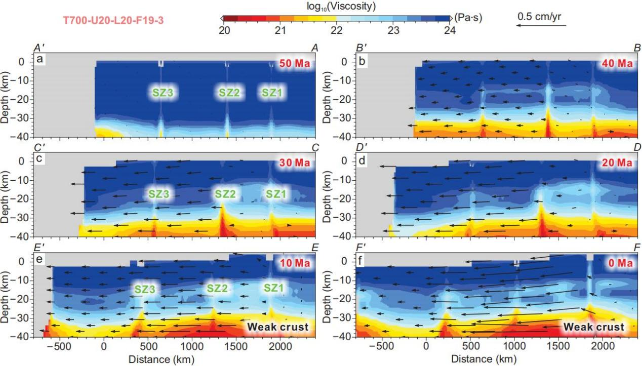 现阶段,该研究的模型简化了地幔动力学过程(如俯冲板片回撤、撕裂及地幔流动),未来将耦合壳幔动力学过程,探讨深部地幔流动对地壳变形的影响。