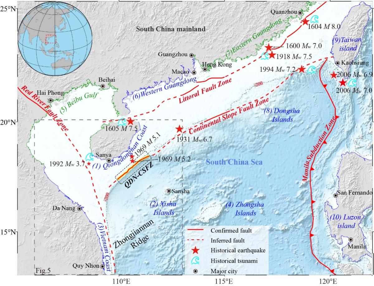 李志刚, 张培震王伟涛代向明曾凡长李琳琳,王大伟杨小强郝明惠格格梁 浩闫永刚张逸鹏田晴映许斌斌孙文2025. 南海北部大型活动断裂结构和全新世活动性研究大地构造与成矿学 49, 1027–1035.https://doi: 10.16539/j.ddgzyckx.2025.00.022.
