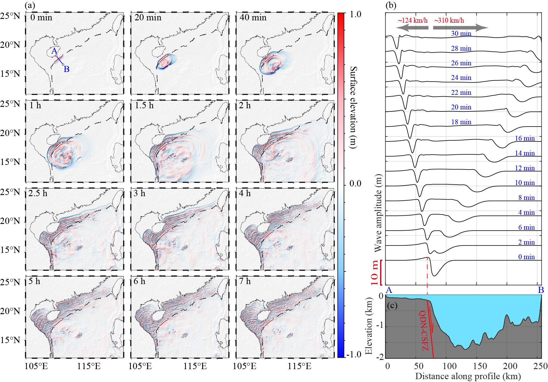 研究指出,对于华南沿海,陆坡断裂带构成了"同震海底滑坡等多机制-短预警时间"的近场海啸威胁,这与马尼拉俯冲带地震海啸的威胁相比,更加难以预测预警。本研究强调了南海北部板内地震海啸的潜在威胁,并指出研发针对近场海啸预警技术的必要性。